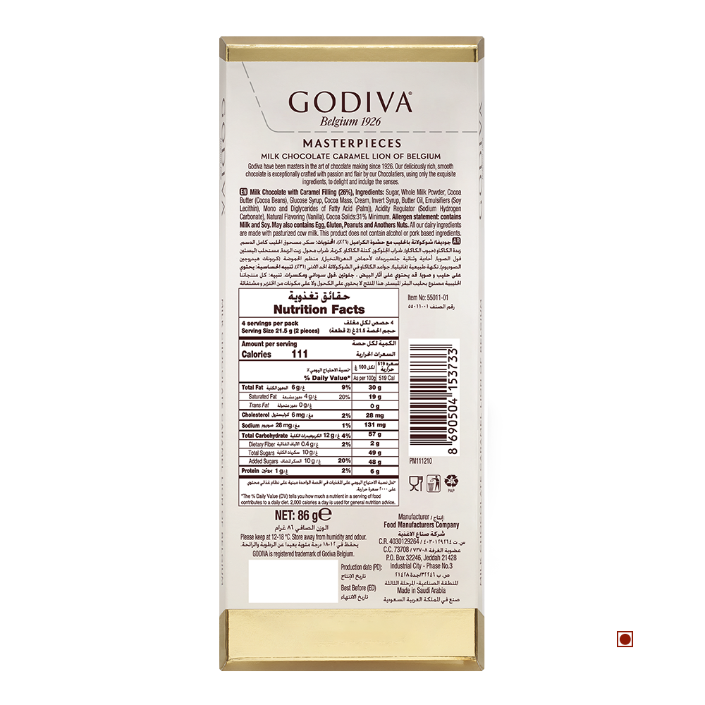 Godiva Milk Caramel Chocolate Bar 86g