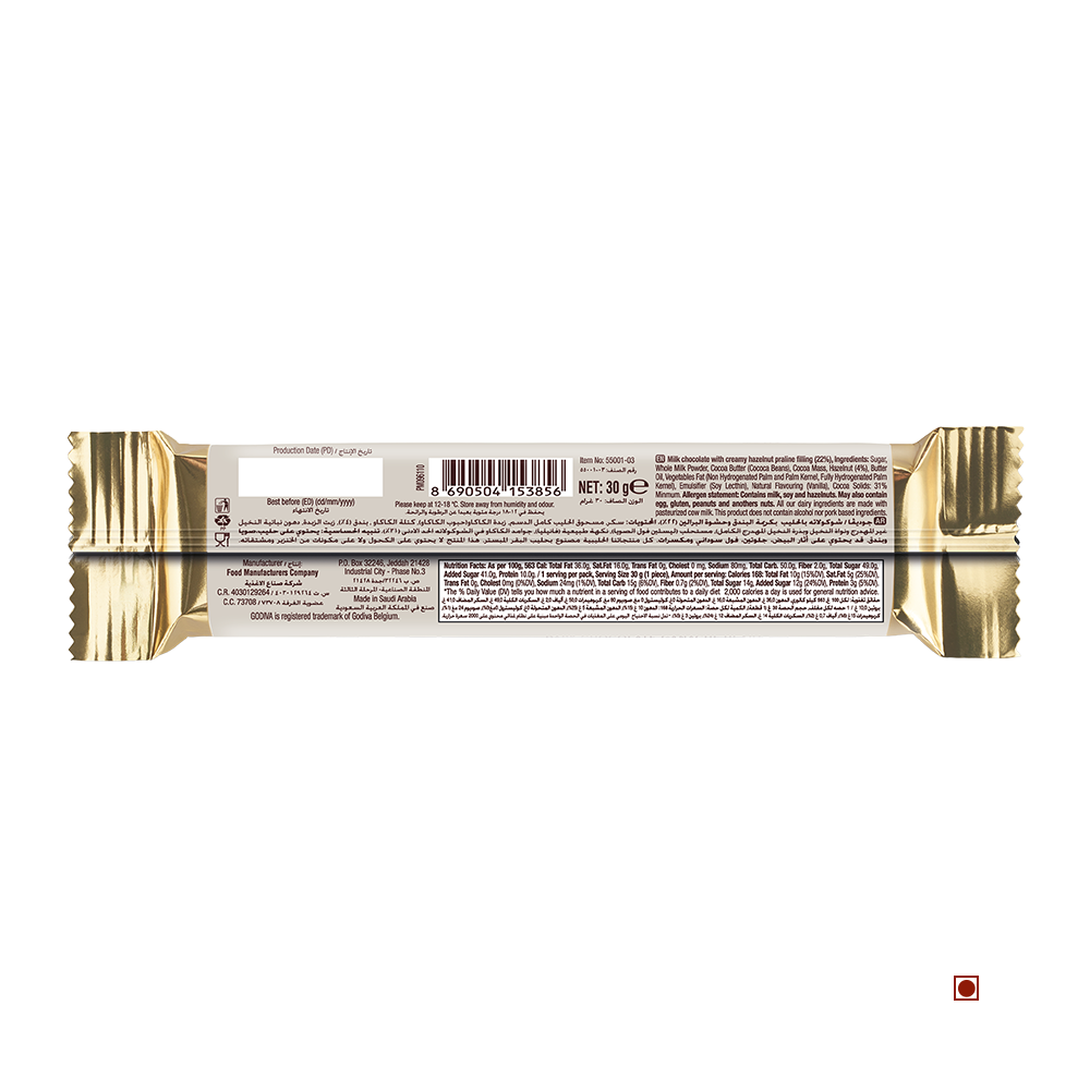 Godiva Milk Hazelnut Chocolate Bar 30g