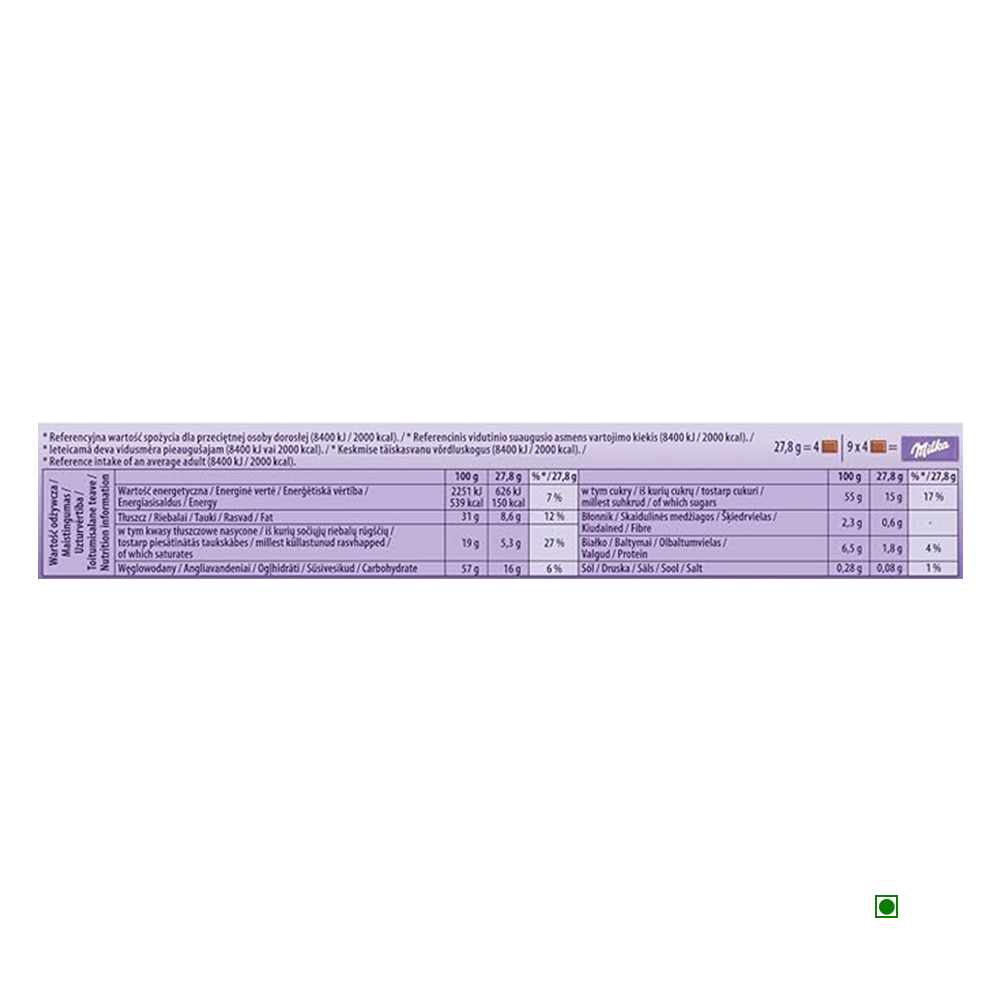 Nutritional Information: Energy 100g: 2251 kJ/539 Kcal, 27.7g: 623 kJ/149 Kcal | Fats 100g: 31g, 27.7g: 8.6g | Of Which Saturated Fatty Acids 100g: 19g, 27.7g: 5.2g | Carbohydrates 100g: 57g, 27.7g: 16g | Of Which Sugars 100g: 55g, 27.7g: 15g | Fiber 100g: 2.3g, 27.7g: 0.6g | Proteins 100g: 6.5g, 27.7g: 1.8g | Salt 100g: 0.28g, 27.7g: 0.08g