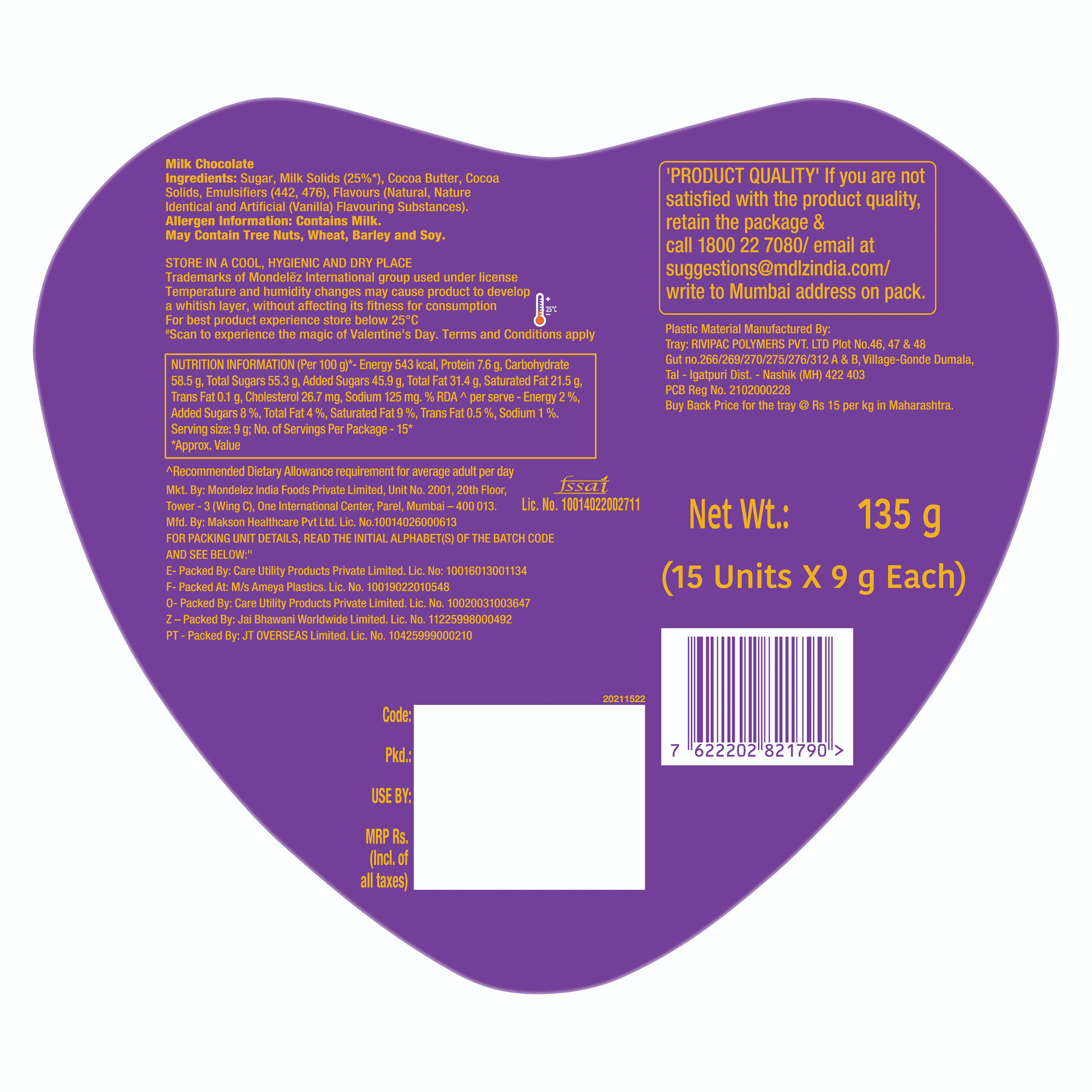 Packed By - MONDELEZ INDIA FOODS PVT LTD